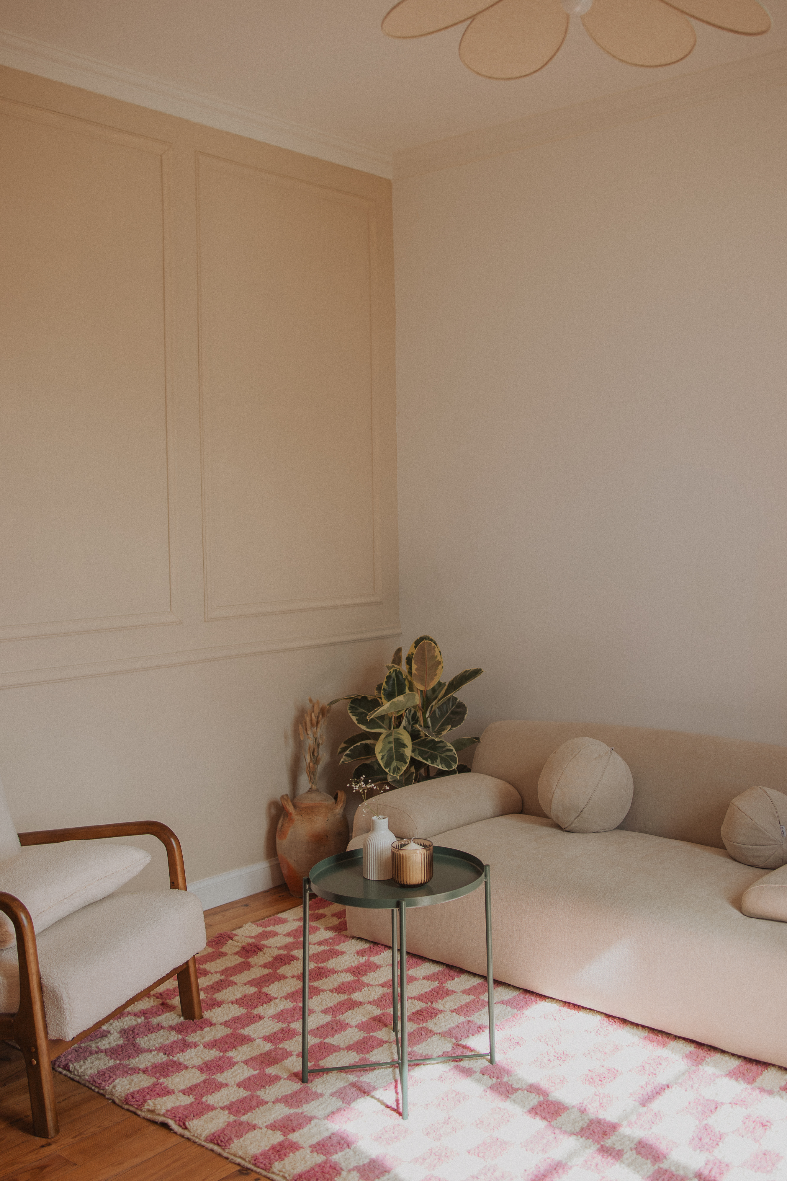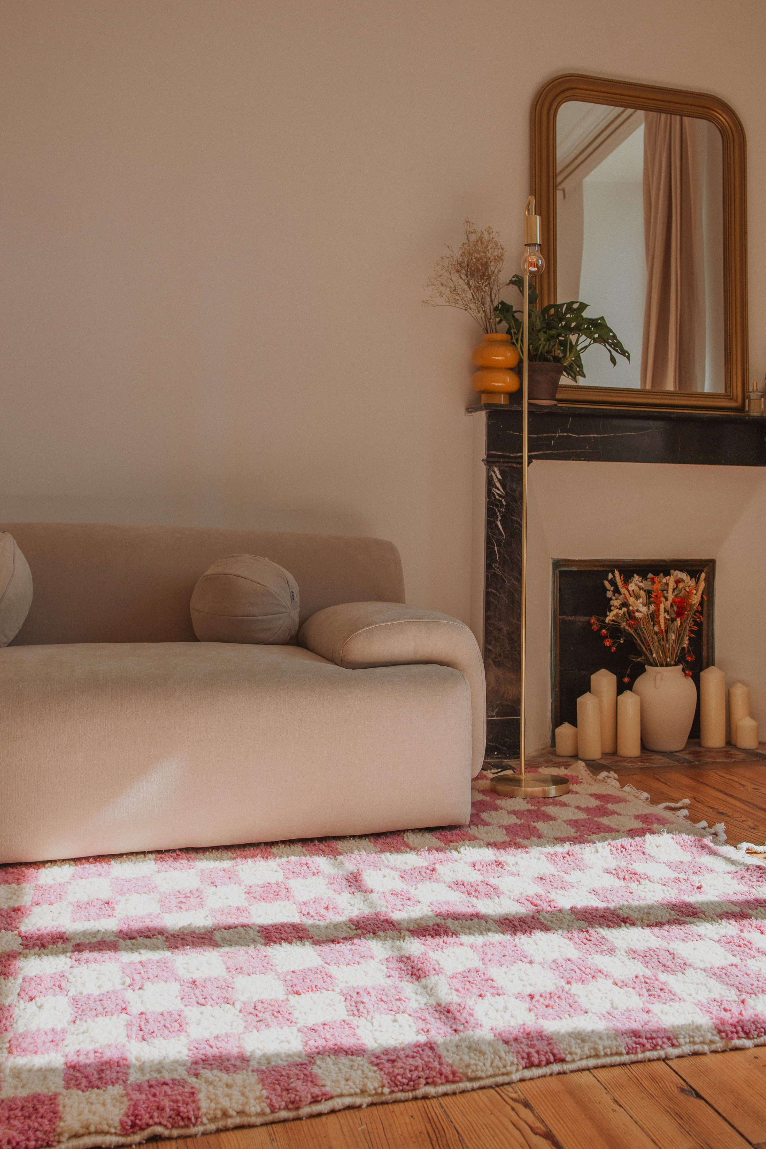 Les motifs géométriques des damiers de ce tapis Béni Ouarain rose ainsi que la douceur de sa laine naturelle s’accordent merveilleusement bien dans un intérieur bohème et moderne. Chaque tapis nous raconte une histoire et chaque modèle est unique.